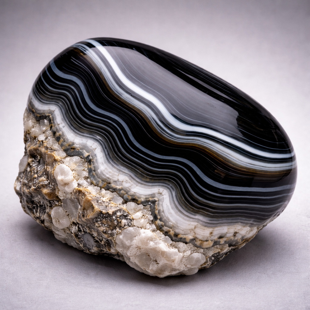 オニキスは瑪瑙(アゲート)の一種で、古くから魔除けや守護の石として扱われてきました。